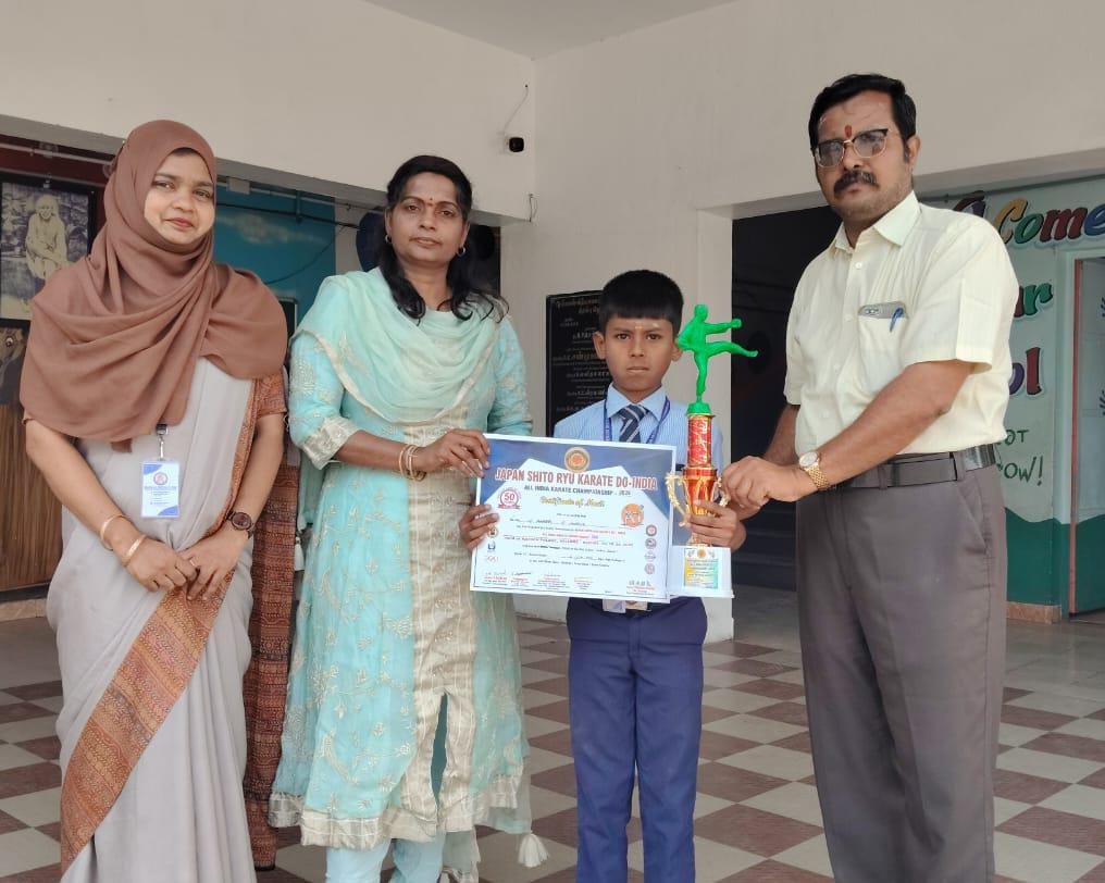 π Proud Achievement! π We are delighted to share that S. Aadesh of Class 6 has secured 3rd Place in the Sub-Junior Individual Kata at the All India Karate Championship 2026 β State Tournament, organized by Japan Shito Ryu Karate Do India on 15-02-2026. π His dedication, discipline, and hard work have brought pride to our institution. π βSuccess is the result of practice, perseverance, and passion.β π Congratulations, Aadesh! Keep shining and achieving greater heights!